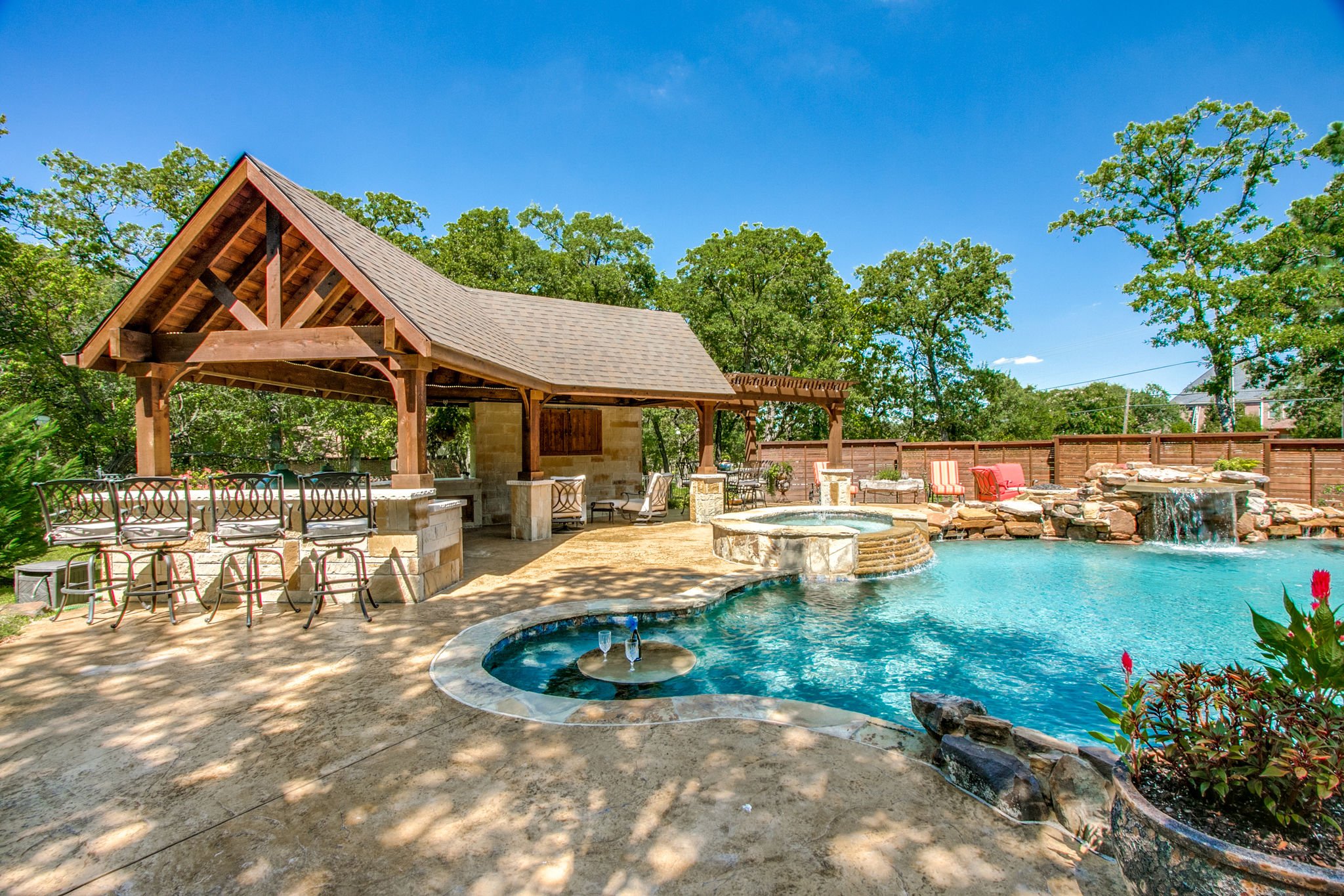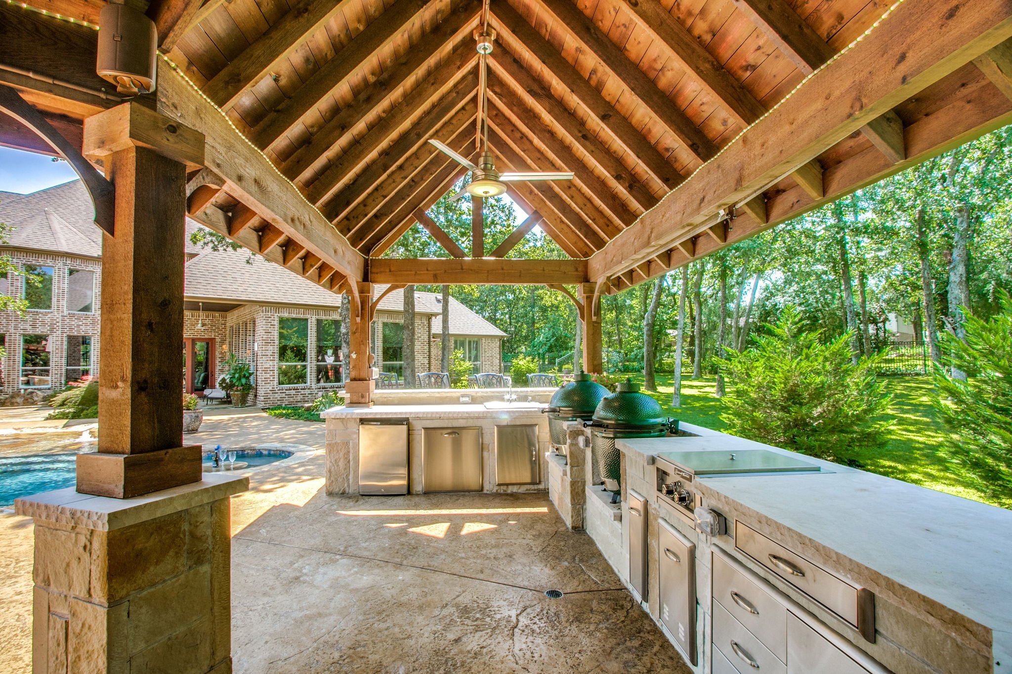 - Outdoor cabana and kitchen with entertainment area and pergola